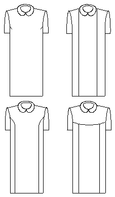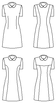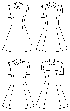 Рисунок 5 – Фасоны женского платья, отражающие различные варианты базовых форм и исходных модельных конструкций изделий содержит наибольшее число деталей конструкций. Процесс разработки МК является наиболее сложной, затратной и ответственной частью разработки ПКД.