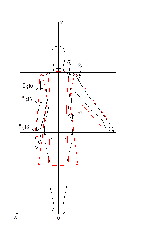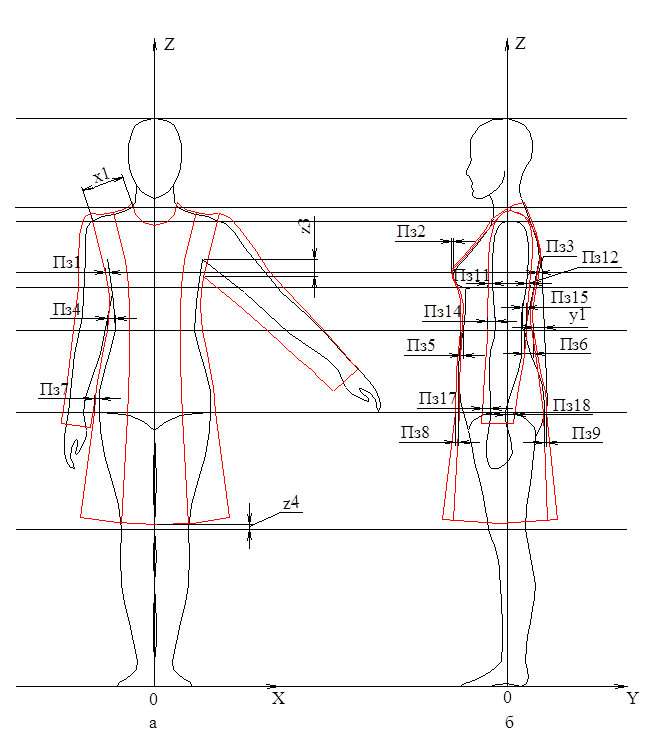 Рисунок П4 – Схема измерения конструктивных параметров женского платья фасона М1