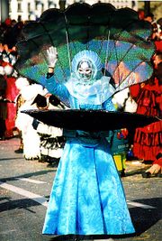 Harlekin vor Mitte Februar oder schon im Januar. Das Fest bedeutet Freude auf den kommenden Frühling. Darin vermischen sich christliche und weltliche Brauchelemente. Durch Lärm und Masken sollten die bösen Demonen, die der erwachenden Natur Schaden zufügen könnten, abgeschreckt und vertrieben werden. Zugleich sollen die guten Geister, die Fruchtbarkeit und Segen bringen, aus dem Schlaf geweckt werden. Das macht man mit Schellen, Peitschenknallen, Rummeltopf usw. Es ist Zeit des Űbermuts und narrischen Treibens. Das Fest wird in Stadt und Land gefeiert. Es Fastnachtsumzug gibt viele Vergnügungen und Maskenfeste (Maskenumzüge). Es gibt Musik und Tanz, Scherz- und Grappengesang. Es wird ein ganzes Narrenprogramm entwickelt. Die Karnevalszeit (Faschingszeit) beginnt am 11.11. um 11 Uhr 11. Es wird ein Elferrat (also Rat der 11 Teilnehmerpersonen) gewählt, der alle Veranstaltungen vorbereitet und durchführt. An diesem Tag findet eine Sitzung mit lustigen satirischen Reden und Scherzliedern statt. Dann wird eine neue Prinzessin und ein Prinz Karneval gewählt. Um 23 Uhr 11 wird das narrische Amt vom alten an das neue Prinzenpaar übergeben. In den nächsten zwei Monaten gibt es groβe Vorbereitungen, es werden lustige Zeichnungen und Karikaturen gemacht, Kostüme bestellt bzw. aus anderen Revue-Programmen ausgeliehen oder neu genäht. Das Fest bereitet den Zuschauern viele Űberraschungen. Die fröhliche Atmosphäre erfasst jung und alt. Die närrische “Hauspolizei” ist auf Humorwasche. Den Höhepunkt des Festes bilden drei Fastnachtstage: der Rosenmontag (Tag der grossen Karnevalsumzüge), der Fastnachtdienstag (Narrenfastnacht, der letzte Karnevalstag – am Tag vor der Fastenzeit) und der Aschermittwoch in der ersten Fastenwoche (die Fastenzeit umfasst 40 Tage vor Ostern). Die Rosenmontagszug zieht sich kilometerlang hin. Geschminkte Gesichter und Masken ziehen vorbei. Es wird viel Satire zum Alltag und zur Politik gezeigt. Viel Freude und viel Leben. In Köln, dessen Karnevalstraditionen weit über die Grenzen des Rheingebietes hinaus bekannt sind, nennt man den Karneval die fünfteJahreszeit. In dieser Zeit wird die tägliche Spannung abgeschüttelt, man ist gern Teilnehmer einer lustigen hinreiβenden Attraktion und fühlt sich locker und ausgelassen.