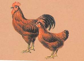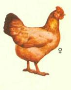 Птица имеет хорошие мясные качества. Гребень листовидный, мясистый, прямостоячий. Ушные мочки красные. Шея средней длины, грудь хорошо развита. Порода интересна в связи с наличием у них гена золотистости, сцепленного с полом, дающего возможность получать аутосексных (разделяющихся по полу в суточном возрасте по окраске пуха на крыльях: петушки имеют белый пух на крыле, курочки — сплошной коричневый). Живая масса взрослых кур - 2,5-2,7 кг, петухов - 3,5- 4 кг. Яйценоскость за первый год продуктивности – 150-180 яиц. Масса яйца - 59-60 г, окраска скорлупы коричневая. Сохранность взрослой птицы - 85%, молодняка - 95%. Породу используют для получения аутосексного гибридного потомства. Порода нью-гемпшир выведена в США в штате Нью-Гемпшир на базе род-айландов. При создании породы для воспроизводства отбирали лучших кур по половой зрелости, яйценоскости и выводимости яиц, чтобы повысить яичную продуктивность. Нью-гемпширы имеют более высокую яичную продуктивность и плодовитость, чем род-айланды. Гребень у птицы небольшой, листовидный. Ушные мочки красные. Оперение туловища светло-коричневое. У петухов перья на шее с красноватым оттенком, маховые перья темно-коричневые, косицы черные. Клюв, кожа и ноги желтого цвета. Взрослые куры весят 2,5-2,7 кг, петухи - 3,2-3,5 кг. Яйценоскость - 190-200 яиц, масса яйца — 61-63 г. Скорлупа коричневая. В основном нью-гемпширов лучших яичных линий используют для получения полутяжелых и тяжелых яичных кроссов (рис.5).