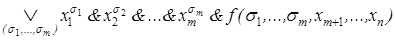 f(x1,..., xm, xm+1,..., xn) = где дизъюнкция берется по всем наборам из 0 и 1, которое называется разложением функции f по переменным x 1,..., xn. Прежде чем доказать утверждение, рассмотрим примеры. Пример 1. m = 1, запишем разложение по переменным х: f (x 1,..., xn) = Пример 2. m =2, запишем разложение по переменным х и f (x 1, x 2,… x n) =