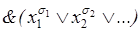 Если f (x 1, x 2) = x 1 Å x 2, то последняя формула дает x 1 Å x 2 = Доказательство. Для доказательства возьмем произвольный набор (a 1,..., a n) и покажем, что левая и правая части формулы (1) принимают на этом наборе одинаковые значения. Слева имеем f (a 1,..., an). Cправа: Дизъюнкция берется по всевозможным наборам (s 1,..., sm). Если в этих наборах хотя бы одно si ¹ ai (1≤ i ≤ m), то Следствие 1. Любую функцию f(x1,..., xn) не равную тождественно нулю можно представить в виде: Доказательство. Существование СДНФ для функции не равной тождественно нулю вытекает из предыдущей теоремы. Покажем, что эта СДНФ единственная. В самом деле, имеется Итак, Замечание. Cледствие 2. Любая функция алгебры логики может быть представлена в виде формулы через отрицание, & и Ú. а) Если f ≡ 0, то f (x 1,..., xn) = б) Если f (x 1,..., xn) ¹ 0 тождественно, тогда ее можно представить в виде СДНФ, где используются только связки Пример 3. Пусть функция f (x 1, x 2, x 3) задана таблицей истинности. Запишем ее в виде СДНФ. Наборов, на которых функция равна 1, три: (0, 1, 0), (1, 0, 0) и (1, 1, 1), поэтому f (x 1, x 2, x 3) = x 10 & x 21 & x 30 Ú x 11 & x 20 & x 30 Ú x 11& x 21 & x 31= =