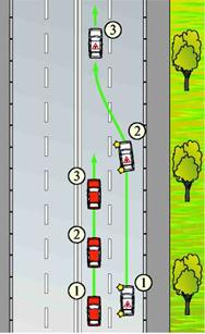 Рис. 56. Перестроение с ускорением. Рис. 57. Перестроение с замедлением