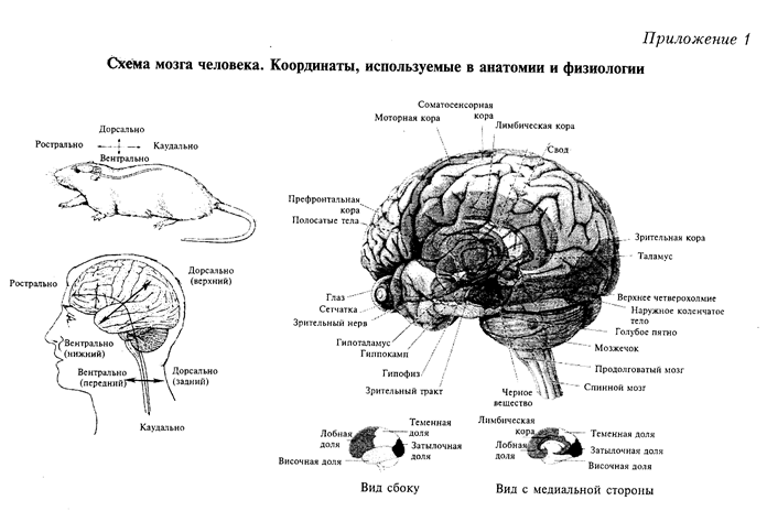 ТОЛКОВЫЙ СЛОВАРЬ Агнозия - утрата знаний. Неспособность субъекта вспомнить о предшествующем событии. Ретроградная агнозия - забывание событий, предшествующих данному моменту времени. Акинезия - снижение объема движений. Один из симптомов нарушения двигательной функции, например при болезни Паркинсона. Аксон - отросток нейрона, по которому возбуждение (потенциал действия) проводится от данного нейрона к другой клетке (другому нейрону, мышечной или железистой клетке). Активная зона - специализированные места цитоплазматической мембраны пресинаптической терминали, в которых происходит освобождение медиатора, упакованного в пузырьки. Амигдала см. Миндалина. Асинергия – нар шение содружественных движений. Один из симптомов нарушения двигательной функции, например, повреждении мозжечка. Ассоциативные области коры - в коре больших полушарий выделяют три ассоциативные зоны: теменно-височную, префронтальную и лимбическую. Атаксия - расстройства походки и равновесия при повреждении, например, мозжечка или задних столбов спинного мозга. Афазия - нарушение речи. Моторная афазия возникает при повреждении зоны Брока, сенсорная афазия - при повреждении зоны Вернике, проводниковая афазия - при повреждении крючковидного пучка, соединяющего зоны Брока и Вернике. Афферент - нейрон, или путь, который передает сигналы к центральной нервной системе. Например, слуховые афференты, вестибулярные афференты и т.д. Ацетилхолин - медиатор, выделяющийся в нервно-мышечных синапсах и некоторых центральных синапсах. Ацетилхолинэстераза - фермент, расщепляющий ацетилхолин на холин и уксусную кислоту. Базальные ганглии, или Стриатум - ядра больших полушарий мозга. Включают бледный шар, хвостатое ядро и скорлупу. Проводящими путями тесно связаны с черной субстанцией, субталамическим ядром (телом Люиса). Биогенные амины - группа медиаторов, включающая серотонин, дофамин, адреналин и норадреналин. Большие полушария - парные структуры головного мозга, особенно хорошо развитые у человека и высших обезьян, связаны между собой мозолистым телом. Брока зона - область лобной коры, критически задействованная в экспрессивной речи. Вентральные корешки спинного мозга - образованы аксонами мотонейронов передних рогов серого вещества спинного мозга, а также аксонами нейронов (симпатических) боковых рогов серого вещества спинного мозга грудных сегментов. Вернике зона - область коры на стыке височной и теменной долей, критически задействованной в сенсорном анализе речи. Возбуждающий постсинаптический потенциал (ВПСП) - возникает как сдвиг мембранного потенциала нейрона в сторону деполяризации при одновременном возбуждении большого числа синапсов. При достижении ВПСП пороговой величины в нейроне появляется потенциал действия. Ионный механизм состоит в суммации многочисленных ионных токов, возникающих при срабатывании одиночных синапсов. Возбуждение нейрона - возникновение потенциала действия. Волокно мышечное - возникает в процессе развития при слиянии нескольких сотен клеток, поэтому по сути является синцитием. В организме в составе целой мышцы функционирует как одна клетка. Волокно нервное - аксон нейрона, который находится в составе периферического нерва. Ганглий - скопление нейронов и глиальных клеток по ходу периферических нервов. Например, межп
