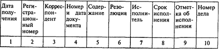 Форма регистрационного журнала обычных входящих документов проста и может иметь такие графы: