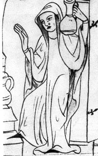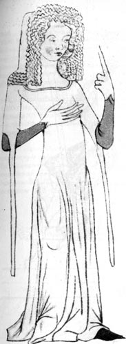 Основа этой моды наиболее выразительно показана на фигурах банщиц, которых художники изобразили за работой. Они одеты в прозрачные, прилегающие рубашки без рукавов, которые совершенно открыто обнажают женскую фигуру, обтягивая её в талии и на груди. Эти рубашки подобны нашим сегодняшним летним платьям или нижнему белью. Бретельки этих рубашек шились из другого материала, как отделка, а широкая лента на поясе, сдвинутая на бок, чаще всего была изготовлена из синей материи. Эта лента имела и свое символическое значение; она стала украшением дролерий Вацлавских рукописей, а также стала цеховым знаком банщиков. Мужскую одежду того времени весьма метко высмеивает Бенеш Крабице из Вайтмиле в 1367 году. Цитирует его и Вацлав Гаек из Либочан: «В то время чехи переняли у других народов дурной обычай в одежде и нравах и далеко отошли от дороги своих предков; ибо (до этого некоторые имели порядочную одежду, юбки, по крайней мере, ниже колена, либо от колена к земле расширяющиеся) они приказали сшить себе юбки короткие и весьма уродливые, т. к. в них ни один не мог нормально согнуться. Эти одежды были такие узкие и тесные, что одевший их едва мог дышать. Однако у некоторых были удлиненные юбки, сзади весьма туго стянутые лентами {а спереди застегнутые на многочисленные пуговицы, рукава были также затянуты и застегнуты на пуговицы, часто пришитые друг к другу... Позже рыцари приказали пришивать себе на бедра особые «рыцарские полосы» из сукна другого цвета). У некоторых бывали на груди пунты, набитые ватой, так что казалось, что у мужчин грудь, как у женщин... Ботинки они приказали себе делать (из красной кожи) с длинными мысами, как аистовый клюв, так что едва могли в них ходить. Пахи, которых раньше не было, все больше и больше распространяются... Так Чехия была в то время испорчена чужими костюмами и обычаями». В литературе уже многократно указывалось на аналогию между готической модой и архитектурой. И в моде преобладают вертикальные линии: отвесные концы верхних рукавов, острые манжеты, пахи, головные уборы, вытянутые кверху, и остроносые ботинки эту тенденцию подчеркивали. И при этом готическая одежда принимает все элементы из предшествующего периода, например, плащ, преобразованный ею по-своему, покрывало, которое стало изготовляться из новых тканей и получило новые функции. Романская мода еще базировалась на рубашкообразном, неприлегающем крое. Готическая выкройка одежды полностью соответствовала фигуре человека и часто о ней говорят, что её трудно превзойти. В этом заслуга, прежде всего, портных, которые хранили свои тайны и уже в то время объединялись в цеха. Готическая одежда и её производство перешло в мужские руки.