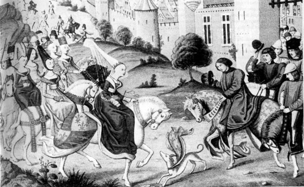 В XII веке, прежде всего во Франции, романское платье, напоминающее скорее монашеское облачение, постепенно сменяется одеждой, тесно прилегающей к фигуре и более грациозной, которая, в основном в XIX веке, окончательно приобретает светский характер со всеми вытекающими отсюда последствиями. Грубая, некроенная по частям одежда предшествующей эпохи, сменяется прекрасно сшитым платьем, сделанным по всем законам портновского мастерства, общий крой которого приспособлен к фигуре его обладателя. Новые виды материи, тонкие сукна фландрского и итальянского происхождения, из которых главным образом шились платья в ту эпоху, мягко облегали фигуру. Они легче кроились и при этом были настолько прочны, что это позволяло выполнить любую драпировку. Некоторые из этих тканей изменяли цвет на свету. Эти новые платья начали шить в XIII веке, по мнению одних авторов, сначала в Италии, по мнению других - во Франции. Эти же места были колыбелью рыцарской культуры, которая явилась выражением и новых эстетических идеалов, отразившихся на женской и мужской моде. Мужским идеалом был уже не храбрый боец, одетый в грубые военные штаны и шкуры; теперь это был изнеженный молодой человек с длинными завитыми волосами, украшенными цветами, и одетый подобно женщине. Цветовые комбинации также имели свое глубокое символическое значение. Тот, кто «служил» избранной даме, носил её любимый цвет. Свидетельства такой «службы даме» сохранились не только во французской литературе, но и в чешской, например, в стихотворении: «Хочу верно ей служить, чтобы быть достойным приблизиться к той, которая дает мне радость и носит платье моего цвета». Прислуга также приспосабливалась к любимым цветам своих господ, соответствующим цветом выражалось и дружеское расположение. Комбинация разных цветов допускалась. Самым модным цветом той эпохи был желтый цвет, который считался мужским. Однако блюстители нравственности и скромности резко выступали против него, т. к. окраска платья в желтое была весьма накладной, а роскошь, по их мнению, развращала людей. Готическую моду с её прилегающим платьем, характерной постановкой тела и способом ношения одежды мы можем наблюдать, глядя на монументальные фигуры святых и королей на фасадах и порталах соборов, а также по художественным миниатюрам средневековых художников. Измененный крой одежды проявился прежде всего в выкройке рукавов и их соединении с плечом. Тесно облегая плечевой сустав, платье следует далее линиям тела таким образом, что видно, собственно, само тело. Такое оформление рукавов гораздо более выразительно, чем это было ранее. К запястью они иногда расширяются, переходя в длинные углы на локтях, которые красиво округлены и тянутся иногда до земли. В Чехии длинные полоски материи на рукаве, которые начинались, в основном, от локтя назывались «пахи» («пах» - по-чешски «запах»), т. к. они тянулись за идущим человеком, как запах. Жилетка также сменилась выкроенным лифом, который стало возможно сшить благодаря боковым швам и вытачкам, делаемым по фигуре. Чтобы лиф был ещё более прилегающим, в XIV веке его стягивают шнуровкой либо застегивают на ряды пуговиц. Эти последние появляются, главным образом, в первой половине XIV века, когда платье прилегало так тесно, что едва можно было двигаться. Только тогда свободное покрывало превратилось в