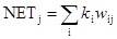 Слои Кохоненна НОРМАЛЬНОЕ ФУНКЦИОНИРОВАНИЕ В своей простейшей форме слой Кохонена функционирует в духе «победитель забирает все», т. е. для данного входного вектора один и только один нейрон Кохонена выдает на выходе логическую единицу, все остальные выдают ноль. Нейроны Кохонена можно воспринимать как набор электрических лампочек, так что для любого входного вектора загорается одна из них. Ассоциированное с каждым нейроном Кохонена множество весов соединяет его с каждым входом. Например, на рис. 4.1 нейрон Кохонена К 1 имеет веса w 11, w 21, …, w m1, составляющие весовой вектор W 1. Они соединяются-через входной слой с входными сигналами х 1, x 2, …, x m, составляющими входной вектор X. Подобно нейронам большинства сетей выход NET каждого нейрона Кохонена является просто суммой взвешенных входов. Это может быть выражено следующим образом: NETj = w 1j x 1 + w 2j x 2 + … + w mj x m (4.1) где NETj – это выход NET нейрона Кохонена j,