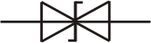 Рис. 3 - Обозначение двухстороннего стабилитрона Двухсторонний стабилитрон чаще называют двуханодным. Главная прелесть состоит в том, что его можно включать независимо от полярности, все равно не ошибешься. Причем стабилитроны одной и той же марки могут быть как двухсторонними, так и односторонними, например, КС162, КС168, КС133 и др. бывают в железных корпусах (или в стекле) и они односторонние, а бывают в пластмасске обычно красного цвета - двуханодные.