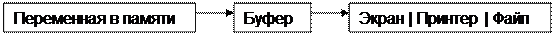 1 часть. Шапка. Располагается до цикла расчета таблицы функции. printf("+------+----------+\n"); printf("| X | Y |\n"); printf("+------+----------+\n"); 2 часть. В теле цикла расчета. printf("|%5.2f |%9.5f |\n", x, y); 3 часть. После завершения цикла. printf("+------+----------+\n"); Функции printf и scanf обычно используются в виде отдельных инструкций, которые получаются добавлением к обращению к ним символа ";". Однако, как и большинство других функций, они могут использоваться в выражениях и, следовательно, должны возвращать некоторое значение. Функция printf возвращает число выводимых символов (байтов), а функция scanf -число введенных скалярных значений. Элементы списка данных функции scanf – адреса переменных, значения которых задаются, поэтому необходимо использовать оператор & (нахождение адреса). Примеры. l=scanf("%d%f%d", &a, &x, &b); n=printf("a=%d x=%.5g b=%d\n", a, x, b); printf("l=%d n=%d\n", l, n); На экране отобразится: 12 23.278e-3 45(Enter) Вводятся с клавиатуры a=12 x=0.023278 b=45 Результаты l=3 n=23 вывода printf("Рост:"); scanf("%f", &height); printf("Вес:"); scanf("%f", &weight); На экране отобразится: Рост:181.5 Вес:75.6 Обмен данных происходит через специальную область памяти, выделяемую операционной системой и называемую буфером, причем буферы ввода и вывода различны. Каждый буфер имеет фиксированный размер, вводимые и выводимые символы сначала накапливаются в соответствующем буфере и только по выполнении некоторого условия и необходимых преобразований отправляются по назначению.