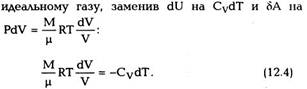 расширение сопровождается охлаждением, а сжатие — нагреванием газа. Комбинируя уравнение (12.6) с формулой