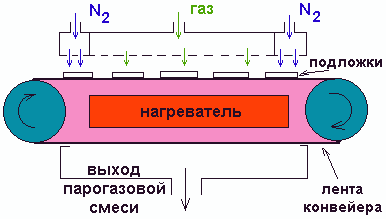 Температура по всей поверхности пластин во время окисления должна поддерживаться одинаковой. Поэтому установки снабжаются устройствами для вращения подставки, а также используются системы подачи газа в соответствии с выбранной формой пьедестала. В качестве химически активного газа применяют моносилан SiH 4 и кислород, а в качестве буферного газа - азот (обычно пьедестал и пластины соприкасаются и разогреваются). Внутри пьедестала имеется полость, предназначенная для предотвращения рассеяния тепла во внешнее пространство и обеспечения равномерности температуры на пьедестале. Однако, поскольку пластины не плотно прилегают к пьедесталу, то температура их поверхности неодинакова и воспроизводимость результатов ухудшается. Кроме того, по мере увеличения диаметра пластин их число в составе одной партии уменьшается, что препятствует организации их массового производства и является существенным недостатком данного метода. Метод формирования пленок при нормальном давлении обладает и рядом достоинств, к числу которых относится большая, чем для других методов, скорость формирования пленок, отработанная конструкция установок. Установки сравнительно компактны и отличаются низкой стоимостью. Все это дает основание надеяться, что описанный метод будет применяться и в дальнейшем при внесении некоторых усовершенствований.