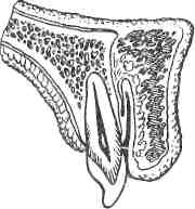 ВИДЫ МЕСТНОЙ АНЕСТЕЗИИ Различают прямое инфильтрационное обезболивание, когда анестетик вводят непосредственно в ткани операционного поля, и непрямое, когда обезболивающий раствор из созданного депо диффундирует в глубже расположенные ткани, на которых проводят оперативное вмешательство. При оперативном вмешательстве на мягких тканях лица, альвеолярного отростка и других областей используют прямое инфильтрационное обезболивание, при удалении зубов и проведении костных операций на альвеолярном отростке - непрямую инфильтрационную анестезию. Анестетик из создаваемого депо под слизистой оболочкой альвеолярного отростка проникает в толщу губчатого вещества кости, пропитывая нервные стволики, идущие от зубного сплетения к зубам и другим тканям. Некоторые авторы такой вид местной анестезии называют обезболиванием зубного сплетения. Эффективность непрямой инфильтрационной анестезии на альвеолярном отростке верхней и нижней челюсти неодинакова. Это связано с особенностями их анатомического строения. Известно, что компактная пластинка альвеолярного отростка верхней челюсти с вестибулярной и небной стороны достаточно тонкая, имеет значительное количество мелких отверстий, через которые проходят кровеносные и лимфатические сосуды и нервные стволики. Эти отверстия располагаются на протяжении всего альвеолярного отростка, что создает хорошие условия для диффузии раствора анестетика в губчатое вещество кости. Поэтому эффект инфильтрационной анестезии на верхней челюсти достаточно высок. На нижней челюсти компактная пластинка альвеолярной части несколько толще и плотнее, количество отверстий в ней значительно меньше. Встречаются они преимущественно в области резцов, клыков, реже - малых коренных зубов. Альвеолярная часть также толще, чем на верхней челюсти, особенно в области малых и больших коренных зубов (рис. 15).