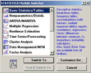 Рис. 1.2. Переключатель модулей STATISTICA 5.0
