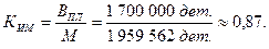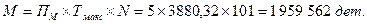 3. Рассчитаем возможный выпуск деталей: МОБ =П × FД × п = 5 × 3 880,32 × 101 = 1 959 562 (дет.). 4. Определим коэффициент использования мощности: