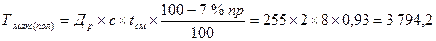 Пример 6 В цехе предприятия три группы станков – шлифовальных – 5, сверлильных – 11, токарных – 12. Норма времени на обработку единицы изделия в каждой группе станков соответственно 30 мин; 1 ч 12 мин; 1 ч 30 мин. Определите производственную мощность цеха, если известно, что режим работы – двухсменный, продолжительность смены – 8 ч; регламентированные простои оборудования составляют 7 % от режимного фонда времени, число рабочих дней в году – 255. Решение: 1. Определим действительный фонд времени работы оборудования: