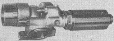 Рис. 8.9. Клапан противообледенения (внешний вид) С двигателем № С94101082 на клапан противообледенения установлен топливный фильтр 6 для дополнительной очистки топлива под рабочим давлением подводимого от ПН-40Р. По электрическому сигналу от системы сигнализации обледенения РИО-3 (установленной на вертолете) или вручную соленоид электромагнита 3 клапана перемещает золотник 4 влево и открывает доступ топливу из канала В в левую полость поршня 2, а правую полость поршня сообщает каналом Д со сливом. При этом поршень 2 вместе с обтекателем 1 переместится вправо и откроет канал для перепуска горячего воздуха в каналы противообледенительной системы, т. е. в каналы корпуса первой опоры двигателя. При выключенном соленоиде электромагнитного клапана золотник 4 под действием пружины 5 смещен вправо, топливо с рабочим давлением поступает в правую полость поршня 2 и удерживает клапан противообледенения в закрытом положении.