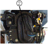 Наклоните переднюю блок фару вперед, так, чтобы можно было видеть заднюю сторону передней блок фары. Снимите с передней блок фары пылезащитный щиток ②