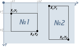 Полагаю, что это всем должно быть ясно. Отсчет ведется от левого верхнего угла картинки, считайте его началом координат (0;0). Если мы работаем с прямоугольной областью, то нам нужны координаты верхнего-левого и нижнего-правого углов области. Порядок записи координат для атрибута coords следующий: <area shape="rect" coords="x1,y1,x2,y2 "> В нашем примере у прямоугольника №1 координаты такие: x1=25, y1=36, x2=114, y2=98 Значит, код будет выглядеть следующим образом: