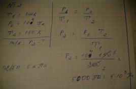 3. Идеал газдың температурасы Т1 = 300 К болғанда, қысымы p1 = 104 Па, ал температурасы Т2 = 150 К болғанда p2 қысымы қандай болады