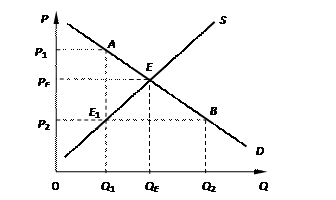 Допустим, что на рынке установилась равновесная цена РЕ, а На появившийся дефицит покупатели и продавцы начинают активно реагировать. В долгосрочном периоде установление «потолка цен» приведет к тому, что производители товара сократят его производство и рынок переместится из состояния Е в точку Е 1, а дефицит еще больше возрастет. Общий размер дефицита будет представлен теперь отрезком Q 1 Q 2. Потребители в создавшихся условиях смогут приобрести только то количество товара, которое будет предложено на рынке, т.е. Q 1. Данный объем недостаточен, и между потребителями возникает конкуренция. Они вынуждены платить гораздо более высокую цену Р 1 по сравнению с установленной «ценой потолка». Таким образом, государственный контроль за ценами нарушает функционирование рыночного механизма, в результате чего общество несет потери.