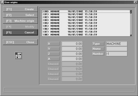 Данные кнопки - Create (Создать), Select (Выбрать), Modify (Изменить), System Origin (Исходные данные системы), Cancel (Отменить). Любая операция управляется сообщениями в нижней части окна User Origins (Исходные данные пользователя). При активировании системного пароля в папке Module Configuration (Конфигурация модуля) в меню второго уровня Config, доступ к кнопкам Orig зависит от ввода пароля.