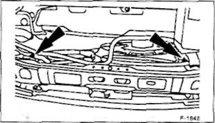 • При температуре раскрытия примерно в +85' С (в • При охлаждении проверьте, полностью ли закрыва- Термовыключатель в дизельном двигателе располо- Внимание! В 4-цилиндровых бензиновых двигателях • Отсоедините штекер от термовыключателя. • Соедините обе клеммы штекера коротким кон- • Включите зажигание. Если вентилятор теперь вклю- • Проверьте прочность посадки и качество контакта • Ввинтите новый термовыключатель с новым уплот-