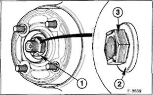 • Отверните гайку оси -1-. Самоконтрящуося гайку • Спрессуйте съемником поворотный кулак с полуо-