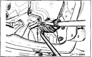 • Если необходимо снять карданный вал в сборе, то и корпусом коробки передач. Поверните монтиров- Внимание! во избежание повреждения коробки под-