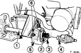 • Выверните болты -6- средней опоры. • Снимите термозащитный кожух -5-. Поврежденный • Стяните карданный вал. • Перед установкой проверьте состояние уплотни-