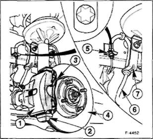 Внимание!Тормозной шланг оставьте подключен- ным, иначе будет необходимо удалять воздух из тор- мозной системы,