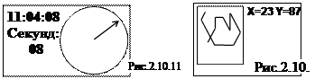 Пример. Составим программу вывода текущего времени в формате ЧЧ-ММ-СС. Вывод цифр времени будем осуществлять большими “рисованными” символами (как, например, на рис.2.10.10). t$ = " " DO 'бесконечный цикл опроса времени 'если нажата какая-то клавиша IF INKEY$<>"" THEN END 'завершение программы IF t$<>TIME$ THEN 'если время изменилось CLS 'экран очищается t$ = TIME$ 'запоминается новое время FOR i=1 TO 8 'перебор цифр времени x$=MID$(TIME$, i, 1) 'выделение очередного символа времени ‘позиционирование точки начала рисования: IF i = 1 THEN DRAW "bm40,80" 'позиция первой цифры часов IF i = 2 THEN DRAW "bm110,80" 'тире часы-минуты IF i = 3 THEN DRAW "bm185,80bm+0,+60r20d20l20u20" IF i = 4 THEN DRAW "bm220,80" 'позиция первой цифры минут IF i = 5 THEN DRAW "bm295,80" 'тире минуты-секунды IF i = 6 THEN DRAW "bm370,80bm+0,+60r20d20l20u20" IF i = 7 THEN DRAW "bm405,80" 'позиция первой цифры секунд IF i = 8 THEN DRAW "bm475,80" 'вывод символов времени: IF x$="1" THEN DRAW "r40d120r20d20l60u20r20u100l20u20" IF x$="2" THEN DRAW "r60d80l40d40r40d20l60u80r40u40l40u20" IF x$="3" THEN DRAW "r60d140l60u20r40u40l20u20r20u40l40u20" IF x$="4" THEN DRAW "r20d60r20u60r20d140l20u60l40u80" IF x$="5" THEN DRAW "r60d20l40d40r40d80l60u20r40u40l40u80" IF x$="6" THEN DRAW "r60d20l40d40r40d80l60u140bm+20,+80r20d40l20u40” IF x$="7" THEN DRAW "r60d60g30d50l20u50e30u40l40u20" IF x$="8" THEN DRAW "r60d140l60u140 bm+20,+20r20d40l20u40bm+0,+60r20d40l20u40" IF x$="9" THEN DRAW "r60d140l60u20r40u40l40u80bm+20,+20r20d40 l20u40" IF x$="0" THEN DRAW "r60d140l60u140bm+20,+20r20d100l20u100" Здесь в переменную t$ заносится символьное значение времени с помощью функции TIME$. В бесконечном цикле производится опрос нажатия клавиши. Нажатие любой клавиши является сигналом завершения программы (IF INKEY$<>"" THEN END). Если в очередном цикле произошло изменение значения времени, экран очищается и запоминается новое время. Далее просматриваются все восемь символов строки времени. Первая группа операторов IF в зависимости от номера символа, фиксирует текущие координаты в нужном месте экрана. Следующая группа операторов IF выводит уже изображение нужного символа, начиная с этой точки.