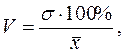 Корень квадратный из дисперсии s (сигма малая) называют средним квадратическим отклонением. Дисперсия и среднее квадратическое отклонение являются наиболее распространенными показателями вариации признака. Достаточно часто используется такой показатель вариации как коэффициент вариации. В отличие от размаха вариации, среднего квадратического отклонения и дисперсии, которые выражаются в абсолютных и именованных числах, коэффициент вариации является показателем относительным. Он выражается в долях или процентах, обозначается символом V и рассчитывается по формуле: