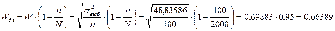2. Определим ошибку выборки при использовании бесповторного отбора единиц совокупности: