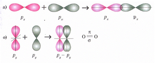 Cонда s электрондарының бұлттары өзара қабысып, екі электрон екі ядроға да ортақ, олардан бірдей қашықтықта орналасады. Бірдей атомдардың арасындағы байланыс полюссіз ковалентті байланыс деп аталады. Электрон бұлттары қабысуы нәтижесінде энергия бөлініп, молекула түзіледі. Бұл энергия шамасы молекуладағы байланыс беріктілігін сипаттайды, олай болса молекула жеке атомдарға қарағанда тұрақты жүйе болғаны. Полюссіз ковалентті байланыста байланыстырушы электрон жұбының бұлты ядролардан бірдей қашықтықта орналасады. Молекулалардың құрылымдық формулаларында бір электрон жұбына бір сызықшаға (-) сейкес келеді. Сутек атомдарының валенттіліктері I, себебі валенттілік байланыс түзуге жұмсалған электрондар санымен анықталады. Сутегі молекуласындағы элементтердің тотығу дәрежелері нөлге тең, себебі атомдардың электртерістіліктері бірдей, электрондар жұптары екі элемент ядросынан бірдей қашықтықта орналасады. Енді оттегі молекуласындағы байланыстың түзілуін қарастырайық. Оттек атомының электрондық формуласы 1s22s22p4, валенттілік электрондары 2s22p4, электртерістілігі 3,5.