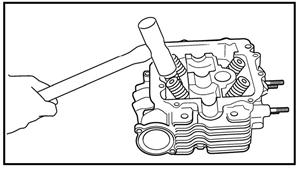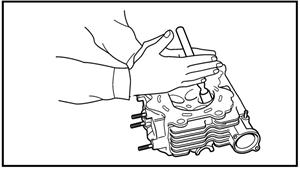 а. Нанесите средство для притирки на фаску клапана в. Установите клапан в головку цилиндра. с. Поворачивайте клапан до ровной притирки фаски и седла клапана. d. После завершения притирки тщательно удалите все