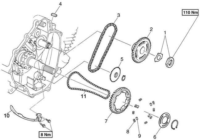 • Штифты шестерни привода балансирного вала • Пружины шестерни привода балансирного вала • Шестерню привода балансирного вала • Пластину фиксирующую шестерни привода
