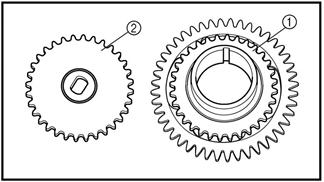 • Шестерню привода масляного насоса (1) и ведомую звездочку привода масляного насоса (2)