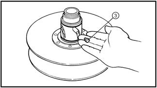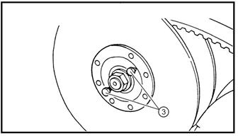 • нанесите сборочную смазку на внутреннюю поверхность и сальники вторичного подвижного шкива (1). • нанесите сборочную смазку на подшипники, сальники и внутреннюю поверхность вторичного неподвижного шкива (2). • установите штифт (3) неподвижной половины
