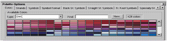 Полоса опций Палитры используется, чтобы добавить цвета к палитре, так же как изменить параметры настройки цветов палитры. Эту полосу показывают ниже.