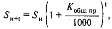 где Sн — численность населения на начало планируемого периода; t — число лет, на которое прогнозируется расчет; K о6щ пр — коэффициент общего прироста населения за период, предшествующий плановому.