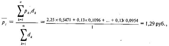 В свою очередь средние цены отчетного и базисного периодов р̅ 1и р̅0 по каждому регистрируемому товару рассчитываются по формуле простой средней арифметической, т. е. как сумма зарегистрированных цен в разных точках, деленная на число зарегистрированных цен.