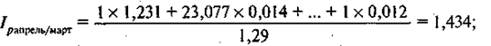 Сводные цепные индексы показаны в нижней строке табл. 14.5. Их расчет приведен для апреля, так как для января, февраля и марта сводные индексы, как и индивидуальные, равны 1: