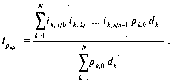 В качестве весов при расчете ИПЦ используются потребительские расходы населения, получаемые в результате обследования домашних хозяйств. Для уточнения удельного веса отдельных статей потребительского набора используются также информация о структуре розничного това-роооборота, экспертные оценки и другие источники. При стабильной экономике изменение структуры потребительских расходов происходит относительно медленно. В этих условиях веса, используемые для расчета ИПЦ, изменяются в среднем один раз в 4—5 лет. Тогда можно использовать следующую формулу расчета: