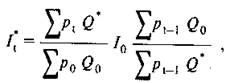 где pt и p0 — цена акции соответственно в момент t и в базисный момент; Q0 — количество акций в обращении; I0 — начальное значение индекса. (Для S&P 500 базисный момент — конец 1943 г., начальное значение — 10; для индекса NYSE Composite базисный момент — 1965 г., начальное значение — 50.)