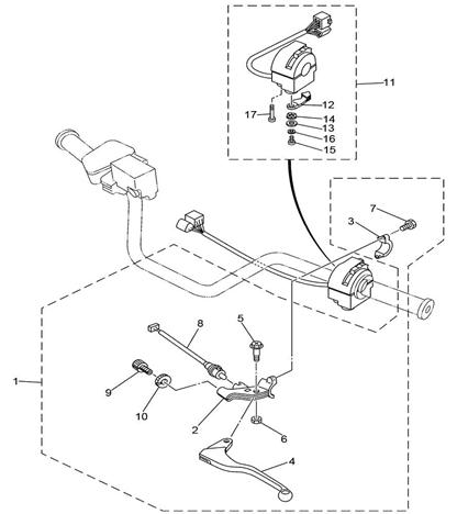 Отсоедините: • все соединительные провода • трос управления воздушной заслонкой • трос управления дроссельной заслонкой • трос управления передним тормозом • трос управления задним тормозом