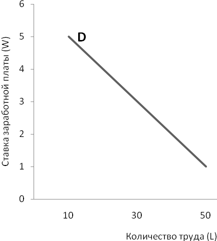 Спрос на труд определяется потребностями работодателей в найме определенного количества работников необходимой квалификации для производства товаров и услуг с учетом совокупного спроса. В соответствии с рисунком 7.2 кривая спроса на труд имеет отрицательный угол наклона, то есть с ростом общего уровня заработной платы спрос на труд падает.