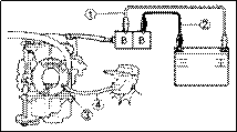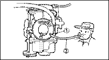 ************************************************************ Inspection and adjustment steps: • Connect the auto choke unit leads to the 12V battery for 5 minutes. Black terminal —(12 V battery (-) Ø Red terminal —(12V battery (+) Ø Connect a 5mm-tube to the starter Ø and blow with the mouth. Possible, Replace auto choke unit. Impossible, Good condition. ************************************************************