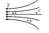 45. На рисунке изображены силовые линии электростатического поля. Укажите верное соотношение для величины напряженности Е поля в точках А, В, С.
