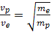 47. Протон и электрон ускоряются электростатическим полем, пройдя одинаковую разность потенциалов. При этом отношение скоростей -: a) -: b) +: c) -: d)